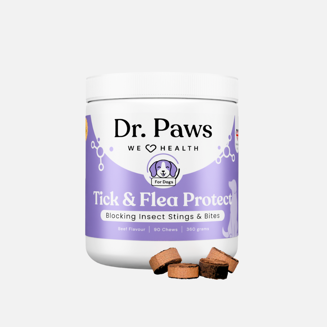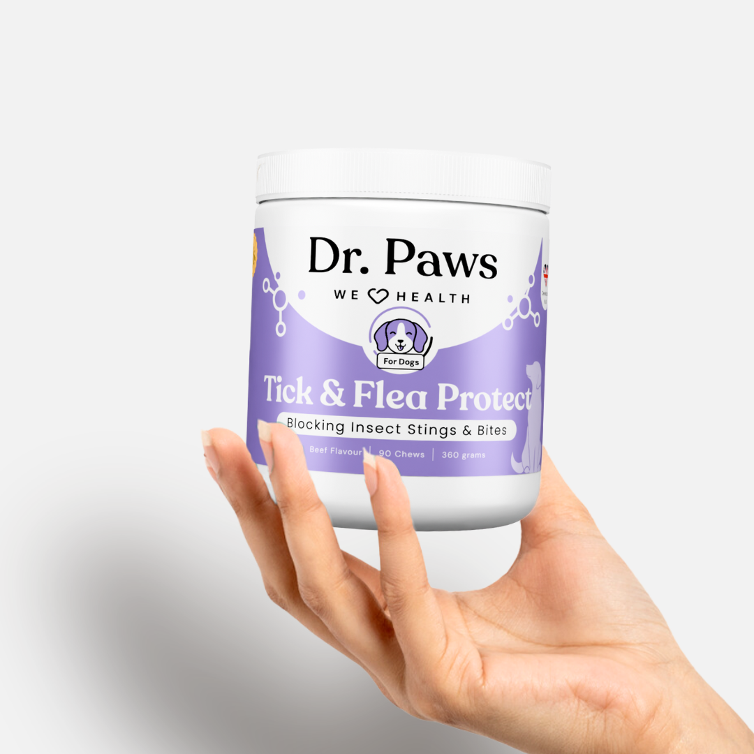 Introducing Dr. Tick & Flea Protect, the ultimate tick and flea health chew for dogs. This powerful supplement is designed to fight and prevent tick and flea infestations, provide anti-inflammatory support, ease itching from bites, and enhance your dog’s immune system against diseases. Dr. Paws Gentle Guard offers comprehensive protection, keeping your dog safe and comfortable all year round.