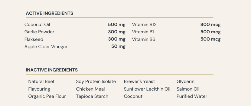Feeding your dog long-term with Bite Block ensures that your dog is fully and constantly protected against ticks and fleas, allowing them to enjoy playing outside and making sure they stay healthy. Consistent use of this product can contribute to your dog's long-term skin and coat condition and prevent potential infestation caused by ticks or fleas.