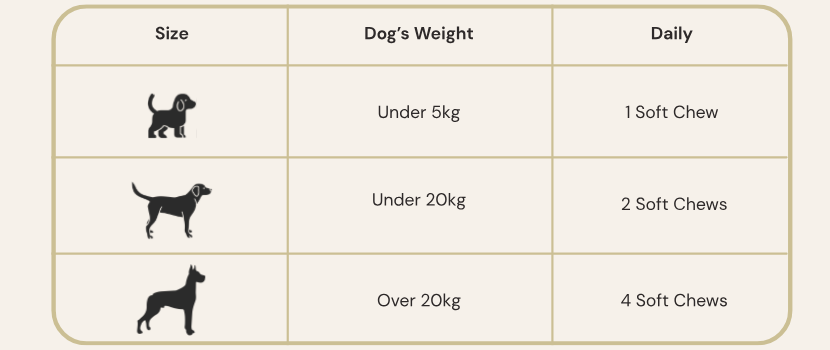 Under 20 kg: 2 chews/day
